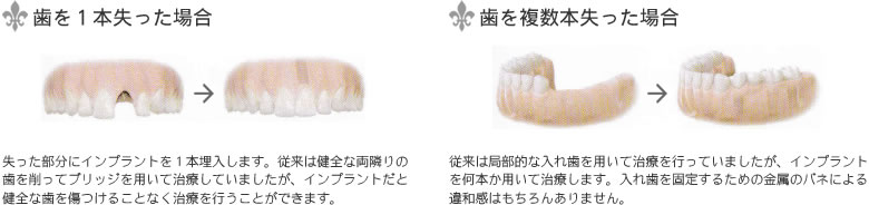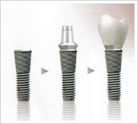 インプラントとは、歯の失われた部位の顎の骨の中に、人工的な歯根を埋め込み、その上に人工歯を取り付ける治療方法をいいます。