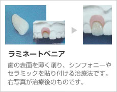 | 白くてきれいな歯は誰もが憧れます。セラミックを使った治療はきわめて自分の歯に近い、もしくはそれ以上に自然な感じに回復します。ただ歯が白いだけでなく、歯茎との調和をはかることによりさらにセラミックの良さが発揮されます。 |