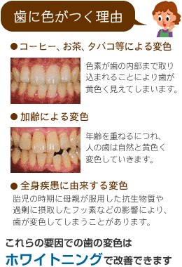 また、歯の色も見た目上で大きな影響を与えます。